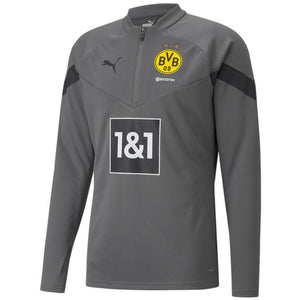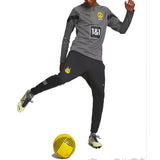 Borussia Dortmund, the yellow wall! Authentic technical training set for new season, 2022/2023, which features grey technical sweat top and black training pants (with grey details). This elegant tracksuit is the same style as worn by players and staff of the BVB on pitch, before every Bundesliga 22/23 game. Perfect for gym, jogging and training. Show your passion for german soccer and train like a soccer pro!