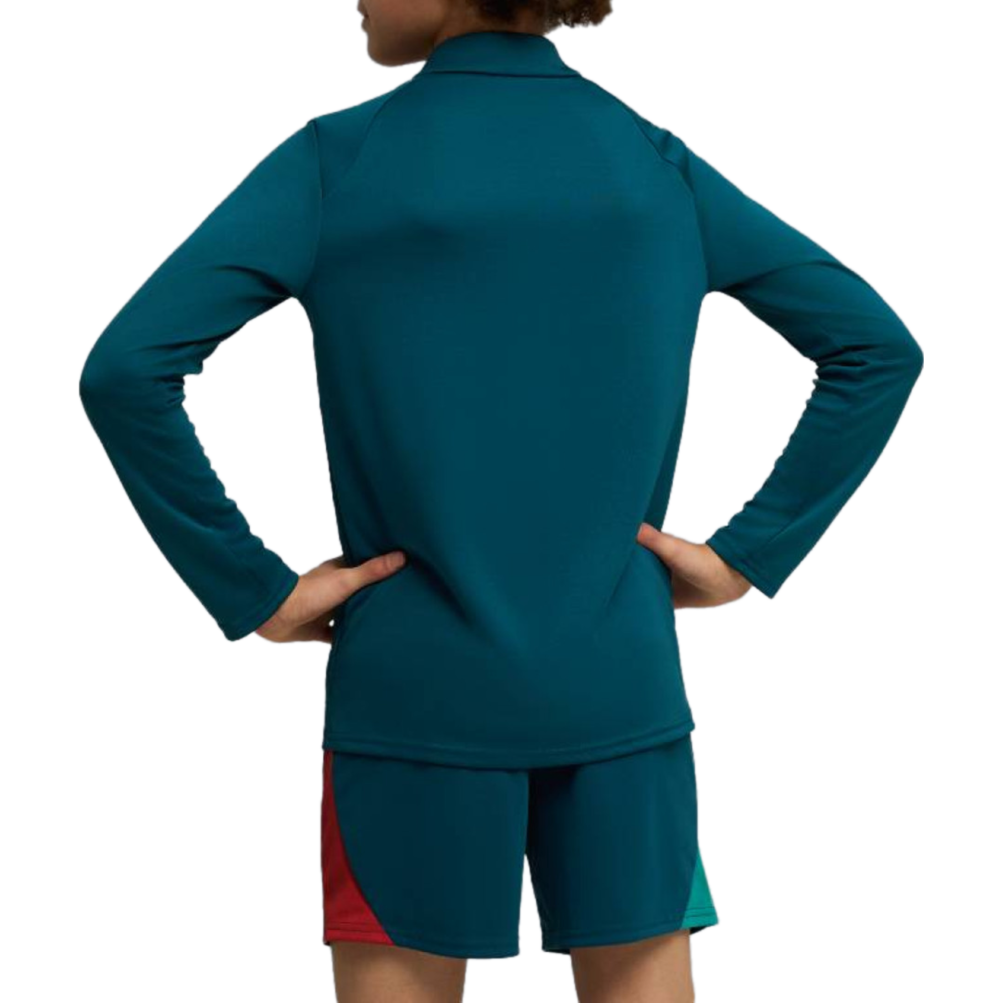 Kids version for the little portuguese fans! On this page you can buy the authentic Puma x Portugal training technical set for FIFA World Cup 2026 and 2026/2027 international soccer season. This stunning tracksuit features water green zip sweat top and matching training pants, to be worn by CR7 and the other FPF players and staff before international matches. This set is a great choice to show your support for Portugal!