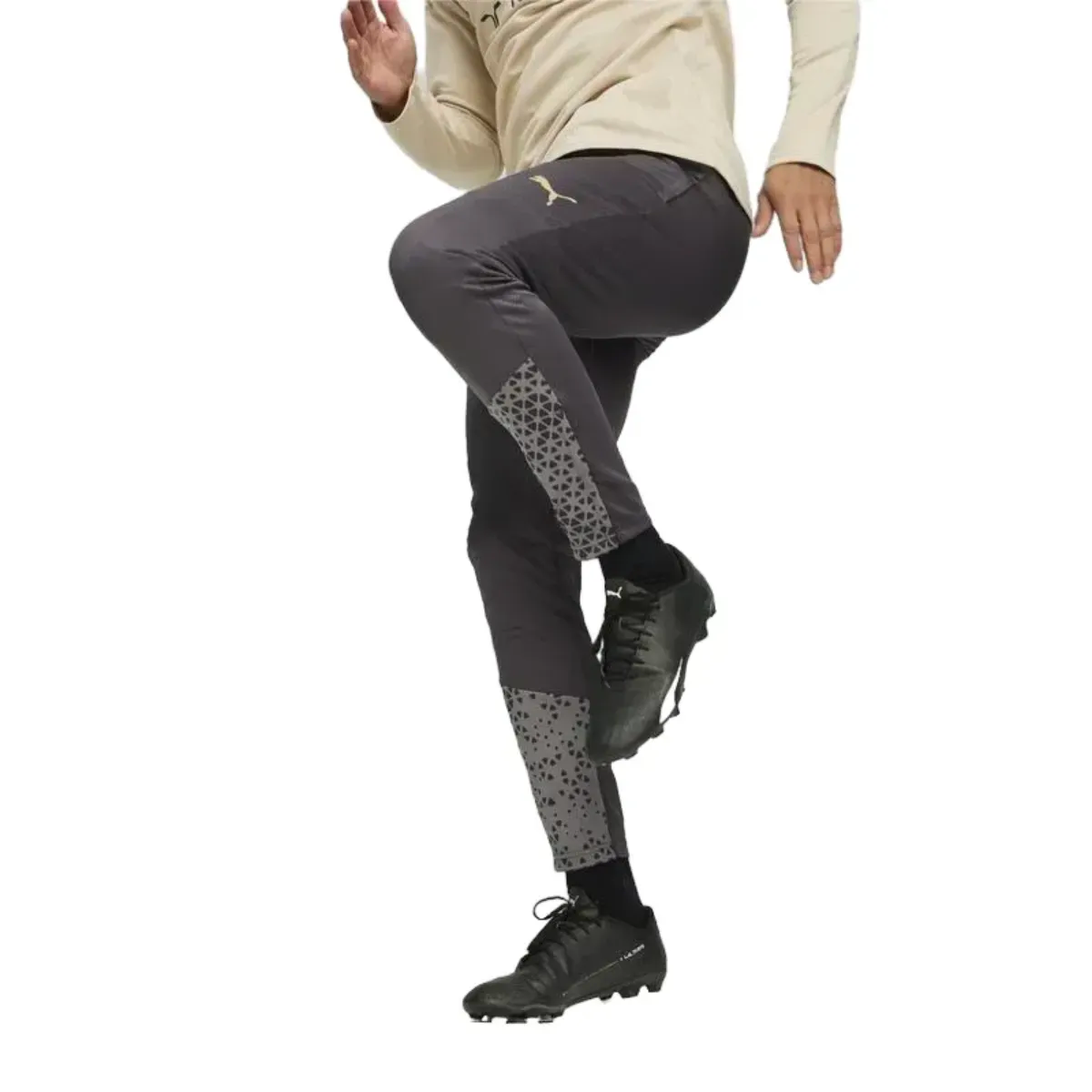 • Olympique Marseille official 2023/2024 technical training tracksuit, designed by sponsor Puma for the OM. This EU version of the set includes a gold 1/4 zip technical sweat top and matching grey training pants. To be worn by players on the pitch in preparation for their games in european competitions. Perfect for wearing during your training sessions, jogging or at the gym.