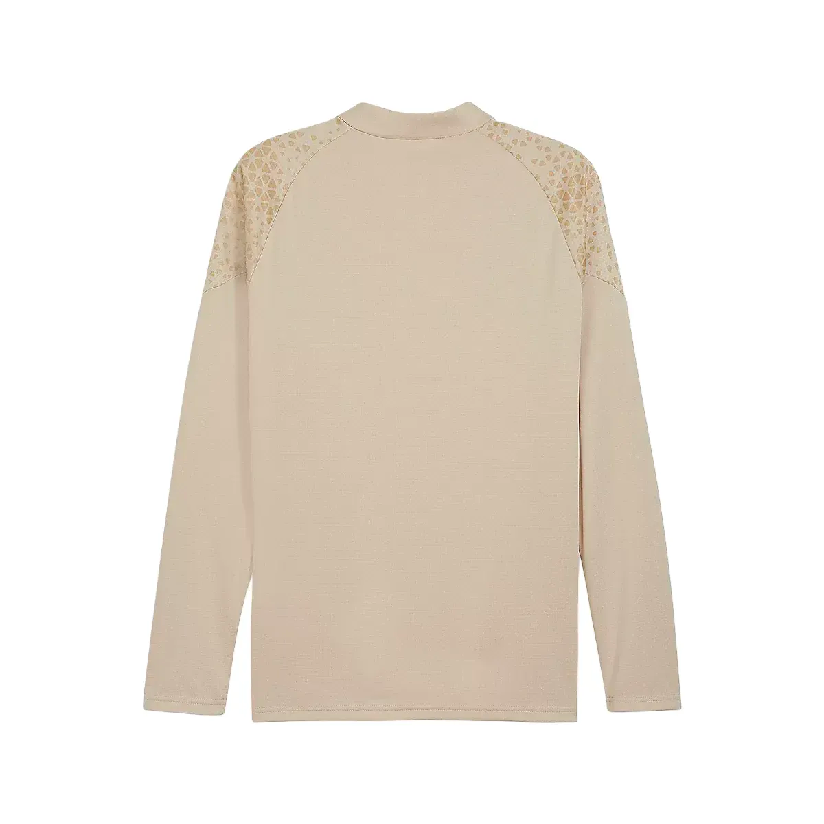 Olympique Marseille gold training tracksuit 2024 featuring a stylish beige long-sleeve top with unique design