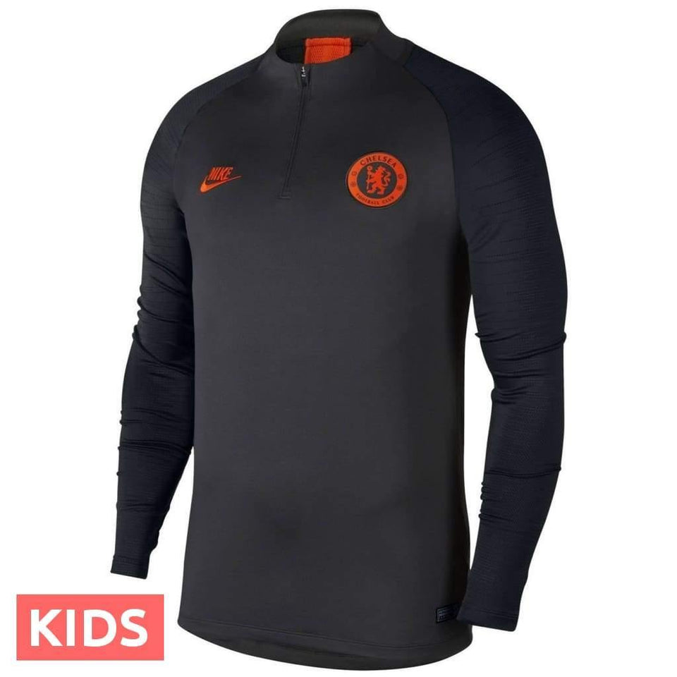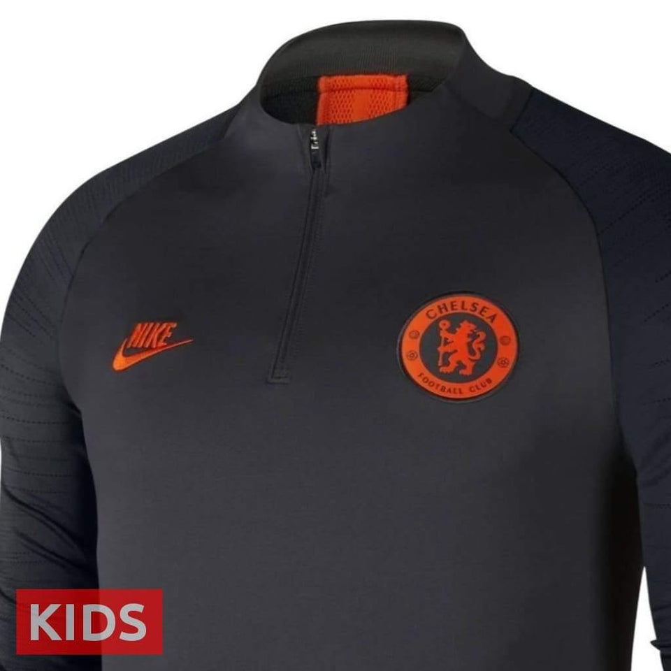• Kids version. UEFA Champions League is back for 2019/2020 season! For Chelsea's journey into the most important soccer competion in Europe, Nike designed this stunning training technical set. It features lightweight tech sweat top and matching training pants, both in anthracite grey with orange details. Wear with pride the Blues' logo for your training sessions, work-out as a european soccer pro!