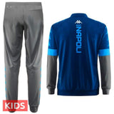 SSC Napoli. Here you can buy the authentic training presentation tracksuit designed by Kappa for the italian club. This set features jacket and matching pants and will be worn by players and staff before UCL, UEFA Champions League games on season 2019/2020. Blue jacket and matching grey pants. Show your passion for Napoli's colors! Kids version