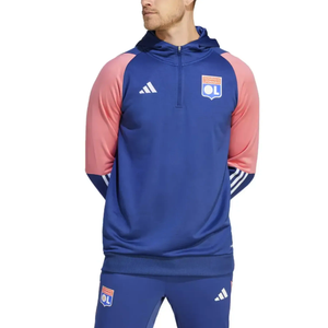 • Unleash your full potential with the 2023/24 Olympique Lyon hooded technical training set, exclusively designed by Adidas for the top French athletes of Ligue 1. This sophisticated tracksuit includes a navy/pink 1/4 zip hooded top and matching training pants, featuring the iconic Adidas stripes/logo and the legendary club's crest. Train with passion and proudly represent OL with this stylish and comfortable tracksuit!
