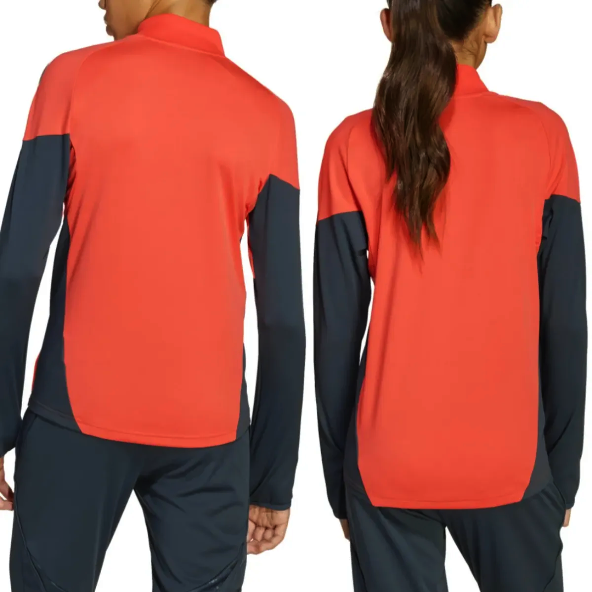 This stylish and modern tracksuit features light red/grey1/4 zip training sweatshirt and matching grey training pants, plus the iconic crest of Bayern Munich and the Adidas logo. Beautiful set with a modern look, to be worn by Bayern players before their games in Bundesliga. Kids version (kids Bayern Munich training tracksuit 2025)