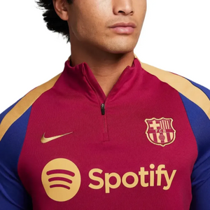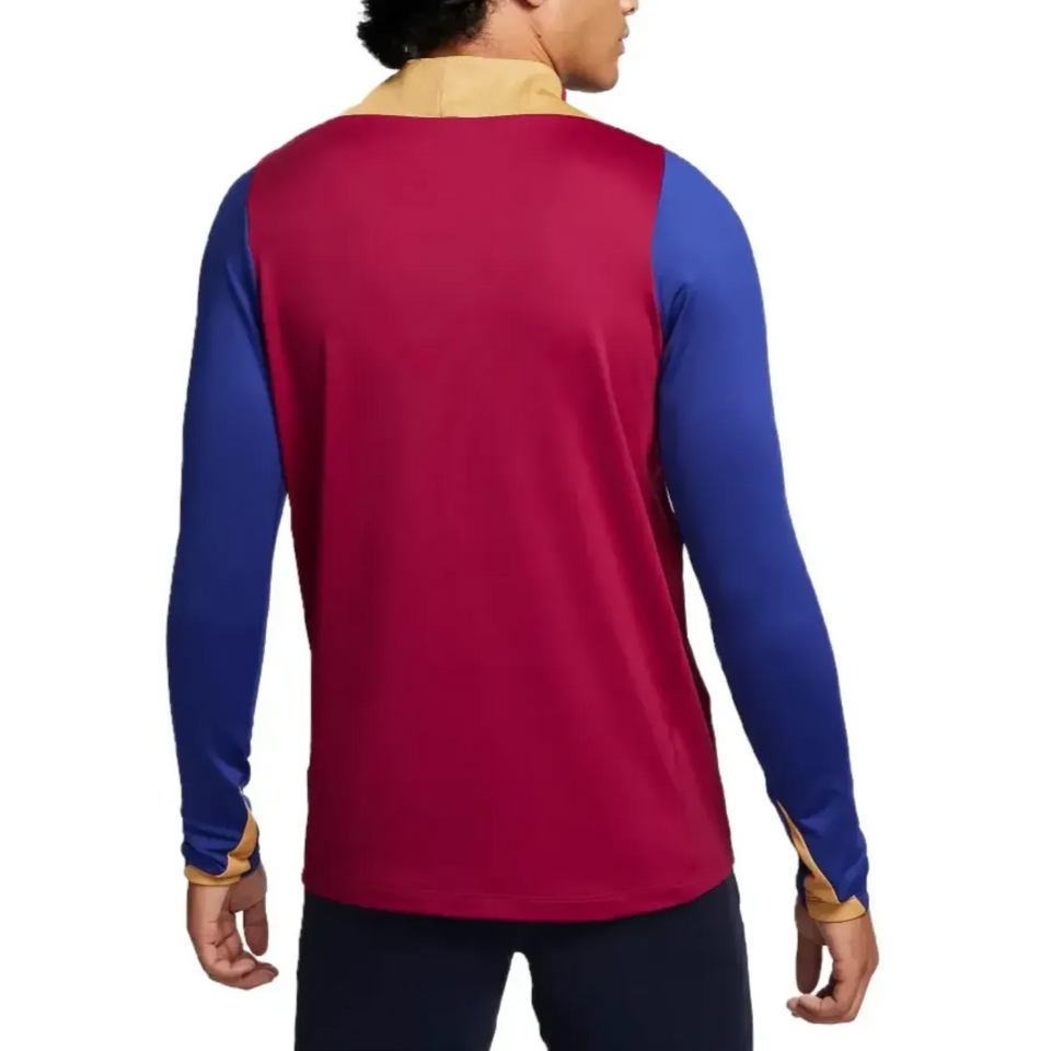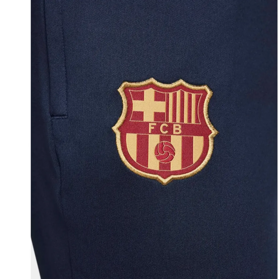Elevate your training with the FC Barcelona technical set, perfect for the winter/spring 2024 season. In partnership with Nike, this stunning style highlights the catalan stars with a lightweight red/blue top and matching navy blue pants, adorned with gold details and the iconic FCB and Nike swoosh. Wear it with pride during jogging, gym sessions, and training. Show your passion for Catalonia and FC Barcelona!