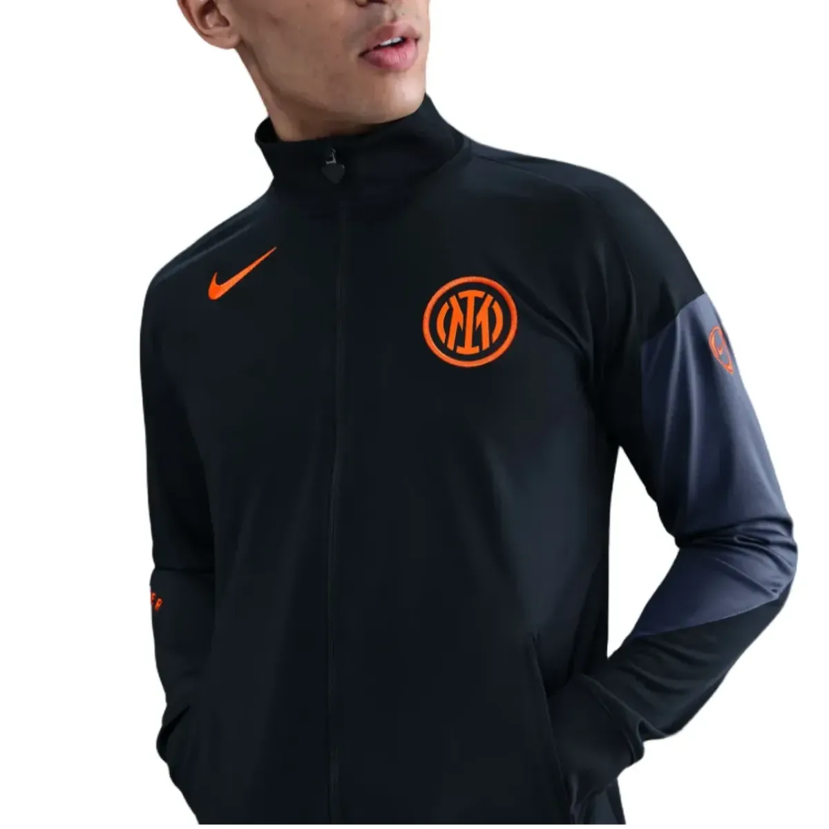 This official Inter Nike tracksuit 2025/26, UCL version, crafted by Nike, features black/orange jacket and matching pants. Inspired by the Total 90 collection, this Inter Milan Champions League tracksuit 2025 will be worn by the amazing players of the italian club before and after their games at San Siro stadium. Comfortable and super stylish: a great choice for your leisure time!