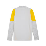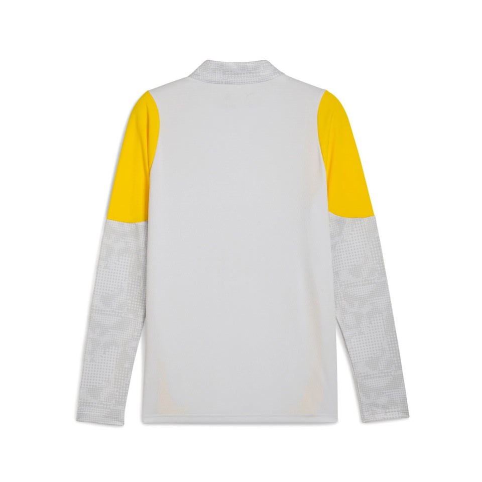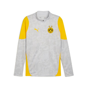 New Bundesliga season, 2025/2026. Show your support for BVB with the official 25/26 Borussia Dortmund technical training tracksuit, brought to you by Puma. This elegant set includes a silver 1/4 zip technical sweat top and matching black training pants, perfect for wearing during your training sessions, jogging or at the gym.