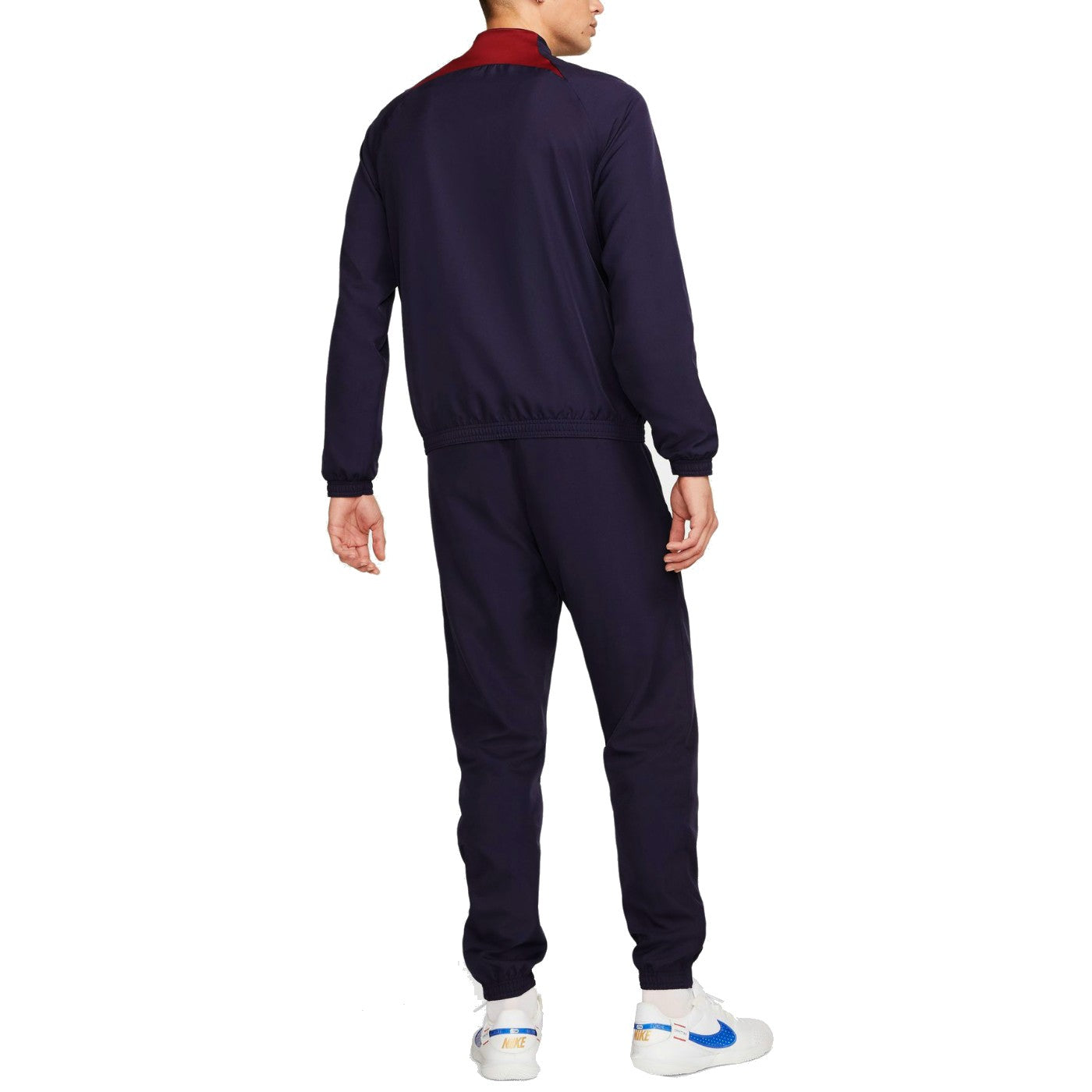Close-up back view of Nike PSG soccer tracksuit for men in navy and burgundy colors