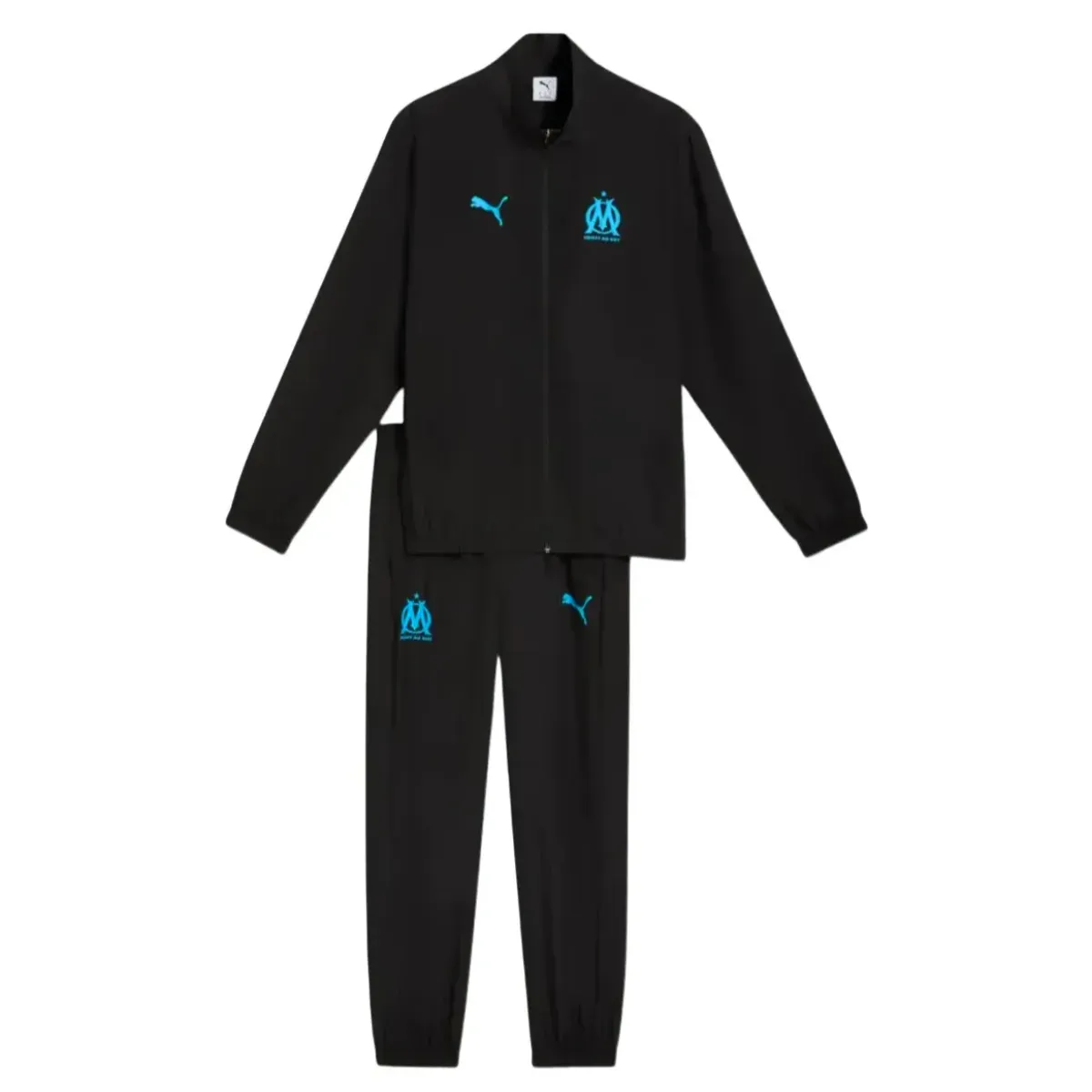 正品马赛奥林匹克编织展示运动服,休闲球迷版,由技术赞助商Puma为2025/2026法国及国际足球赛季设计,供在Velodrome体育场法甲比赛前后穿着展示使用。