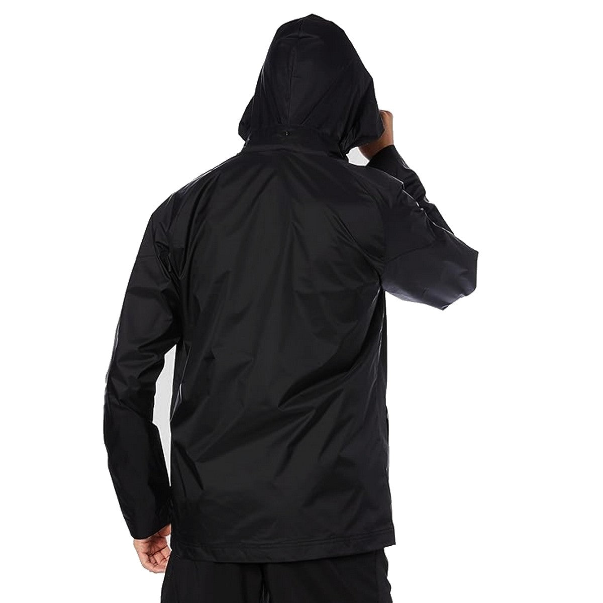 AC Milan black Puma rain jacket with adjustable hood and waterproof fabric for outdoor activities