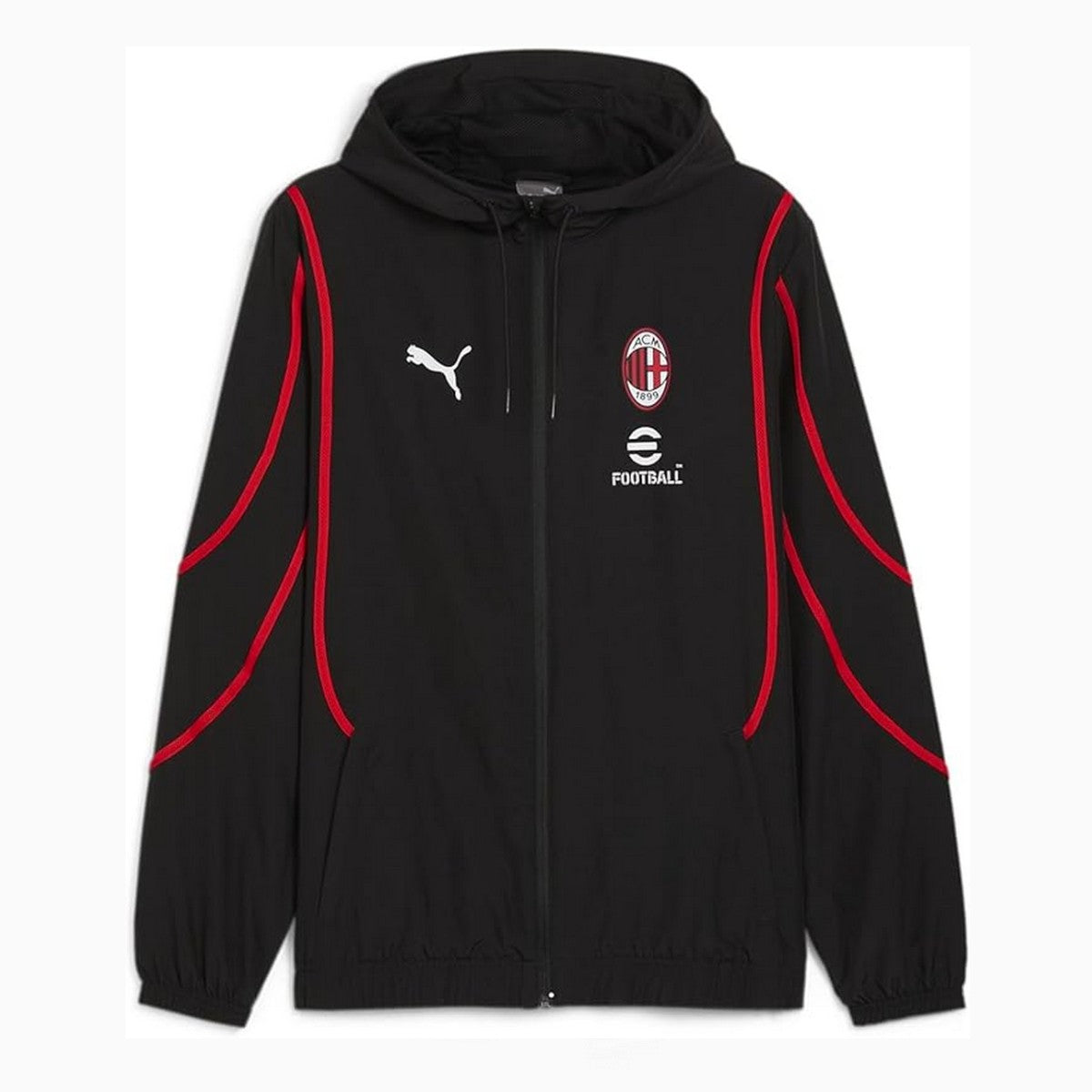• Authentic AC Milan pre-match hooded presentation tracksuit, designed by technical sponsor Puma for 2024/2025 italian soccer season, to be worn for presentation purposes before and after Serie A matches at San Siro stadium in Milan.