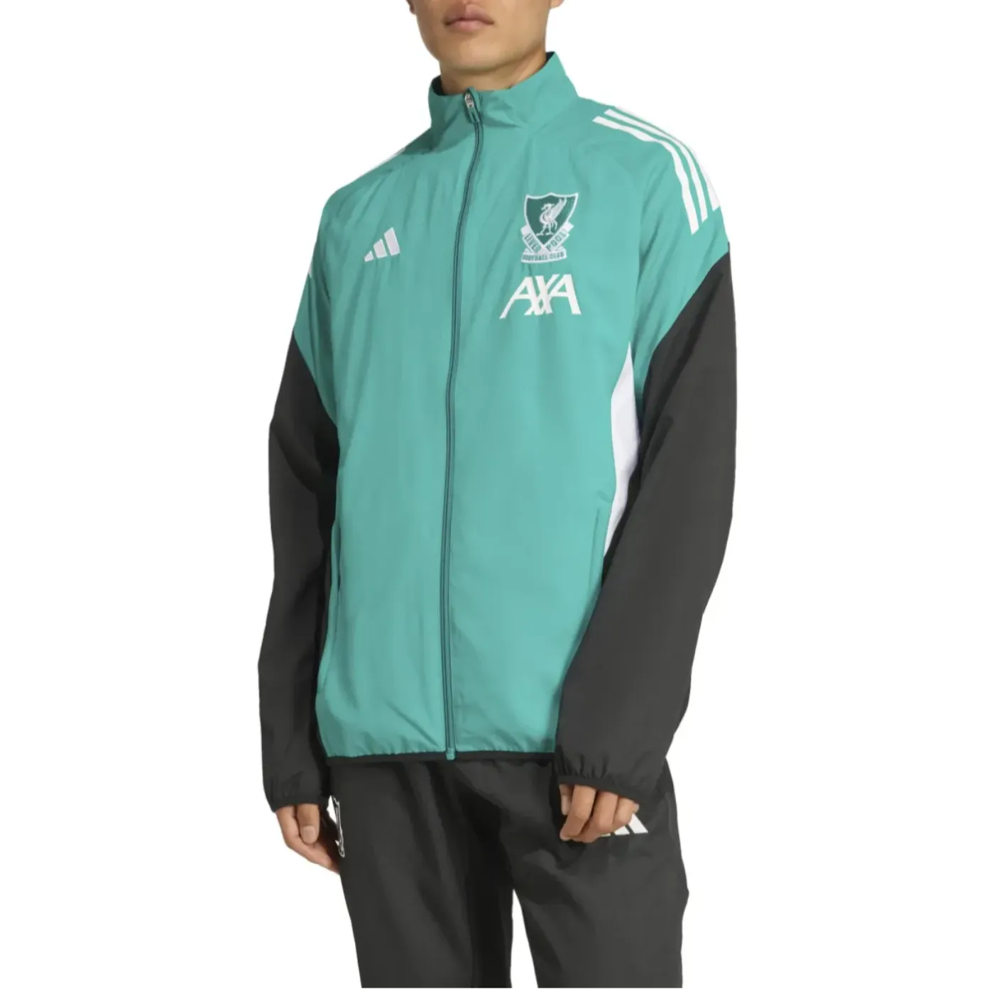 这款款式将由球员在欧冠比赛前后穿着:采用水绿色/黑色织物夹克和配套的黑色裤子,均印有利物浦队徽和阿迪达斯标志。舒适与设计兼备,适合您的休闲时光。穿上这套利物浦冠军联赛运动服,展现您的LFC自豪感!